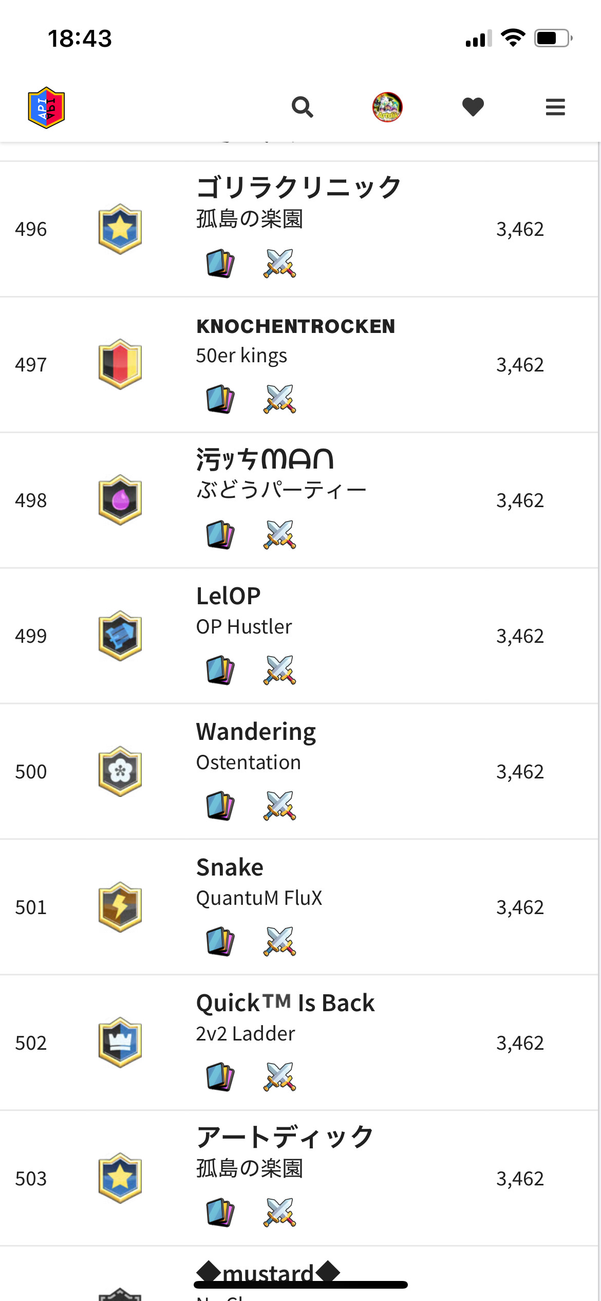 Even though I’ve been playing with the 496th player all the time and reaching that rate at the same time, why am I so far away from the 503rd place??