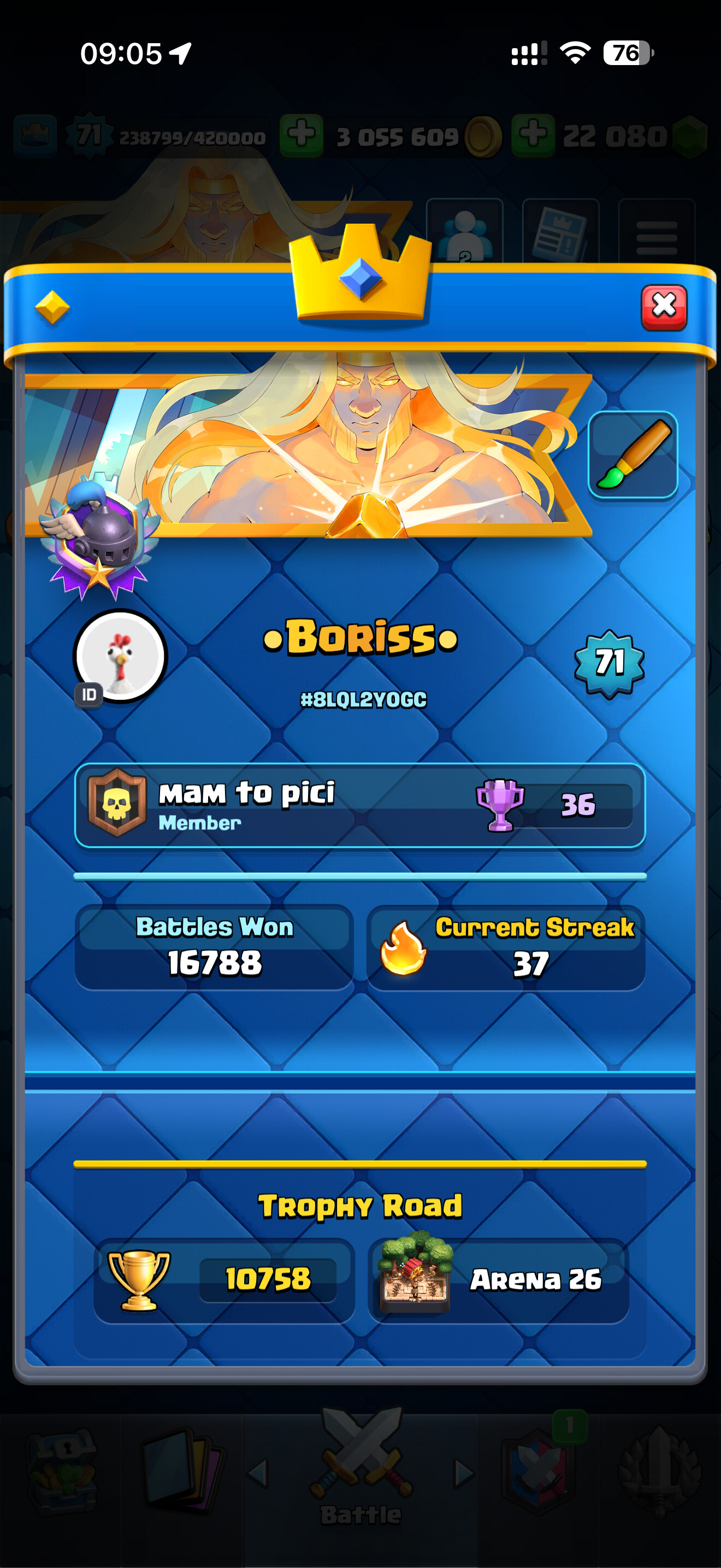 my profile is not showing up on trophyroad leaderboard. I have lvl 15 towers and have 10758 trophies as of now. I don’t see myself on that leaderboard. I’m including a screenshot of my profile. Thanks